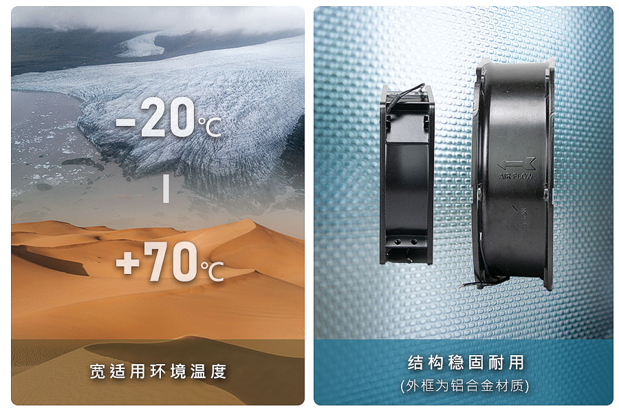 PowerNex 交流散熱風扇使用滾珠軸承,通過 UL 507 認證標準,亦符合歐盟 CE 規(guī)范,且經過多項可靠度驗證,產品長時間使用安全可靠;可應用于家電、醫(yī)療、工業(yè)配電、儲能、電梯、機械設備、工具機等設備。