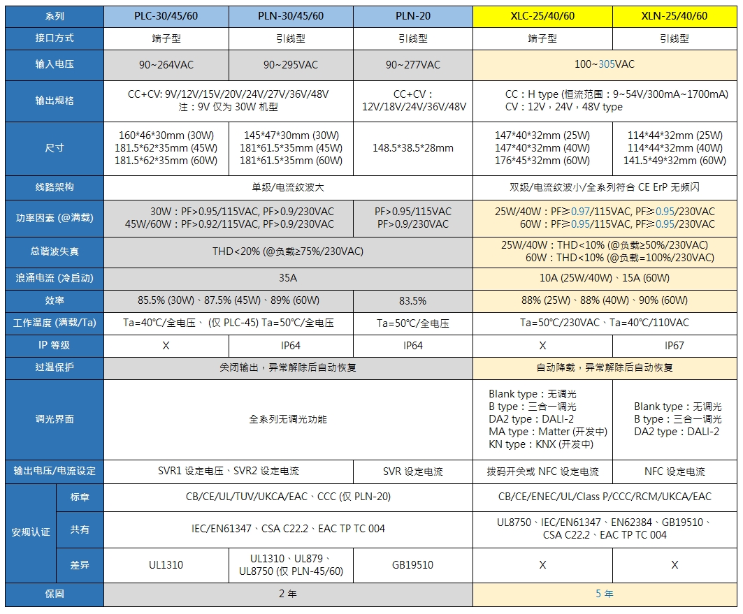 XLN/XLC 系列:25W/40W/60W 智能調(diào)光 LED 驅(qū)動(dòng)電源