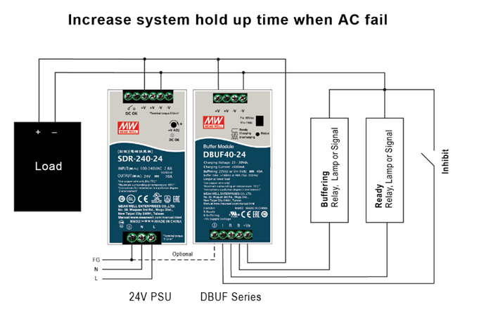 明緯推出的DBUF系列,搭載緩沖動作訊號。當(dāng)輸入電壓失效,導(dǎo)致輸出電壓不足緩沖模組開始動作時,DBUF緩沖模組內(nèi)建的繼電器將會啟動,可供使用者做微系統(tǒng)進(jìn)行資料儲存的偵測的依據(jù),借此達(dá)到資料的即刻救援,解決使用者對于設(shè)備可靠度的需求。