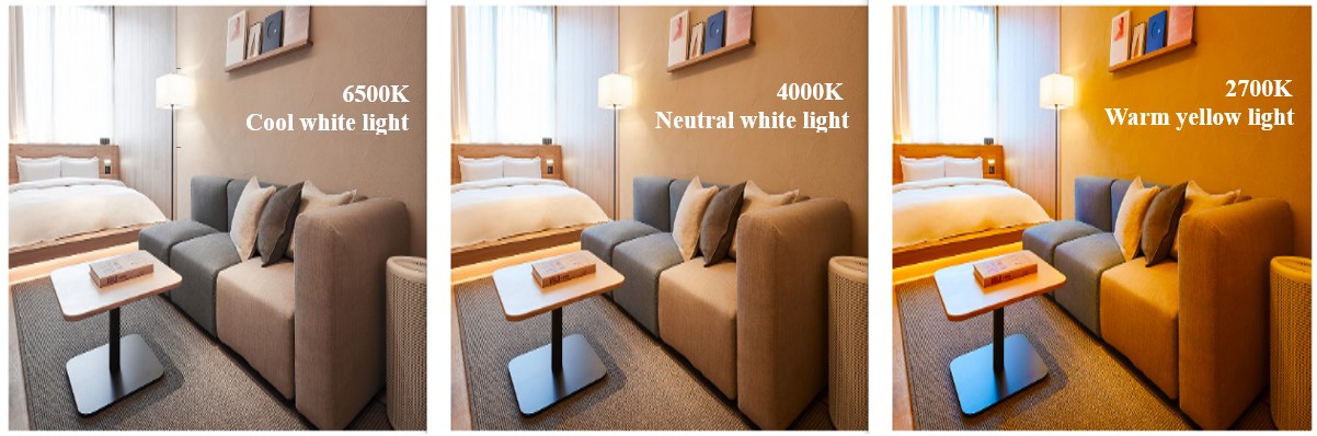 單一色溫的燈具并不能同時滿足人們的生活和工作需要,人們對光溫的需求會依不同的時間段而不一樣。如下圖二酒店房間照明,在白天,冷白光或中性白光更適合于閱讀和交流;到了晚上,溫暖的光可以緩解身心疲憊,改善睡眠質量。因此,以色溫可調的LED燈具將會越來越廣泛應用于住宅、酒店、辦公和其他商業(yè)照明場合,以提供個性化照明,滿足不同時段需求。