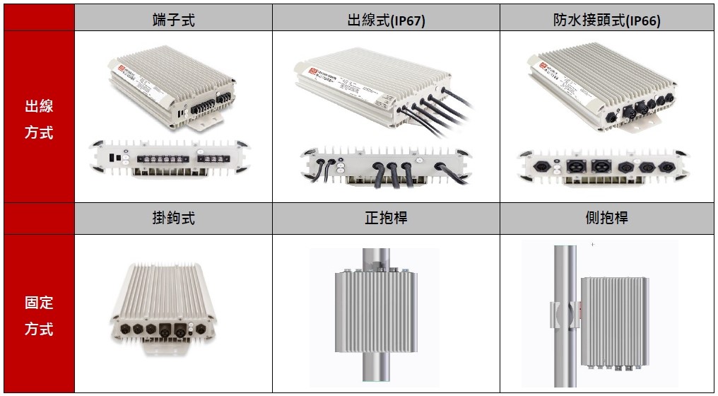 明緯新推出的HEP-2300是非常適合操作在戶外,且瓦數(shù)需求2000瓦以上的系統(tǒng)。HEP-2300系列包含四種不同輸出電壓55V/115V/230V及380V,適用于高粉塵或室內(nèi)外儀器設(shè)備,輸出電壓可透過三種方式調(diào)整,包含內(nèi)建可變電阻方式、透過可程序化(PV/PC)功能,亦可透過數(shù)字通訊如CANBus/PMBus/MODbus等,對輸出電壓及電流做調(diào)整,方便結(jié)合人機接口做系統(tǒng)整合與控制使用。HEP-2300系列除提供不同的輸出電壓,亦提供三種接線方式,包含傳統(tǒng)端子式、防水出線式及防水接頭式;同時也提供不同固定方式如掛鉤式,正抱桿或側(cè)抱桿等方式。