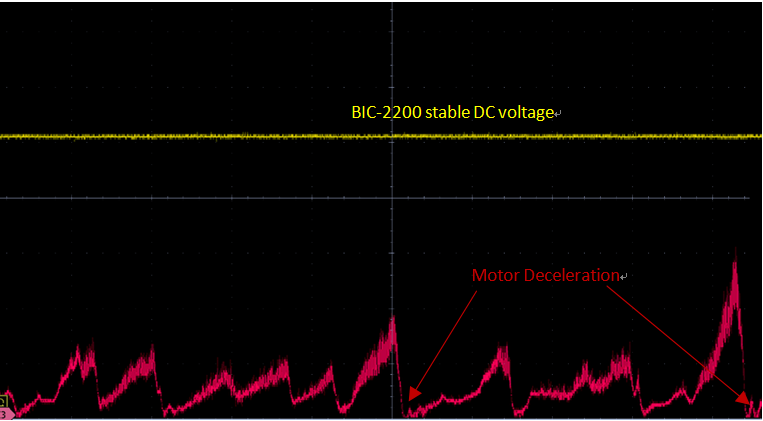 圖 2. BIC-2200 在馬達減速期間穩(wěn)定輸出電壓